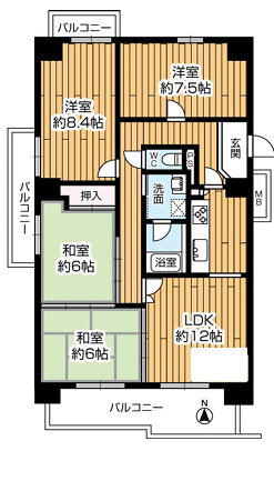専有面積 壁芯 91.76㎡ 所在階 14階建/6階部分
